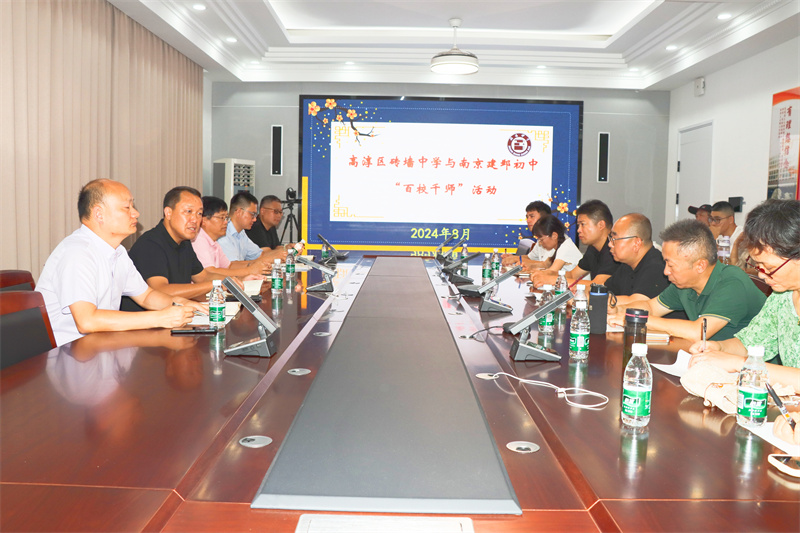 2024年8月16 日下午,建邺初级中学开展“共享教育智慧,共谋学校发展”为主题的“百校千师”交流研讨活动。参与此次活动的有高淳砖墙中学马从年书记、校长,中层管理人员,以及学校教研组长和备课组长,建邺初级中学校领导和所有行政人员。在建邺初级中学李明顺书记、校长的带领下,一行人参观校园、综合楼、功能室,了解学校的发展和变化,感受建邺初中的校园文化。随后在一楼会